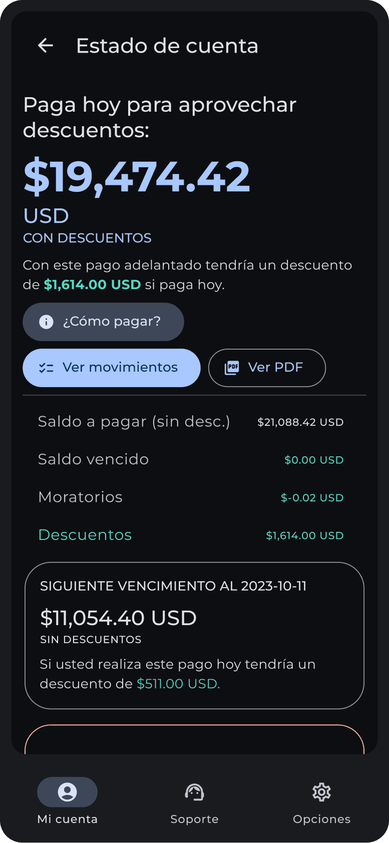 Before finishing the core functionalities, I built a PDF account statement with the product requirements and main features and made an A/B Test to determine if the new account statement will be understood versus the old one. We asked some users to analyze the previous statement PDF, and the feedback was really good—it was this test that showed us 65% of users could now easily understand the amount to pay and the discounts, comparing it to the 10% of users who tested the previous statement and understood the amount to pay and the discounts.