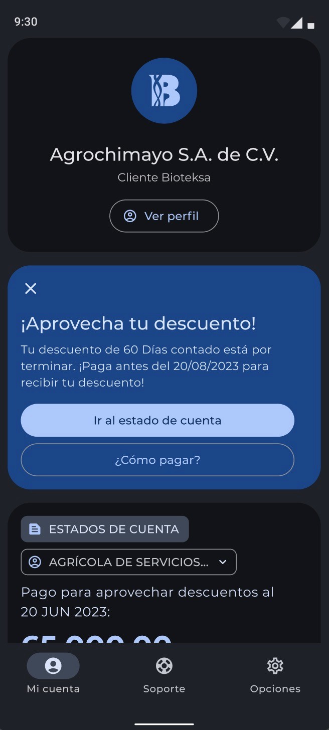 The Bioteksa App was born to solve the problem distributors had to manage account, see statements and pay. The app replaces confusing account statements with clear, on-demand financial data, highlighting key payment dates and available early-payment discounts. It also eliminates the security risks and logistical hassles of cash transactions by integrating secure digital payment options.